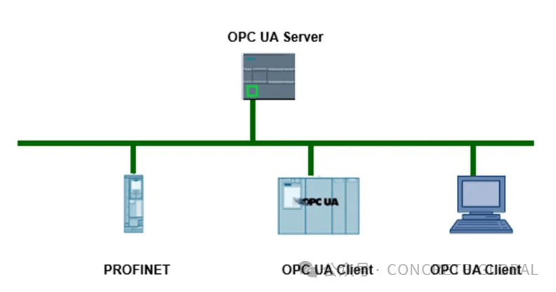 OPC UA 采用简单的客户端/服务器的机制进行通信。服务器可在网络中提供大量信息,如有关 CPU、OPC UA 服务器、数据和数据类型的信息。OPC UA 客户端访问这些信息。