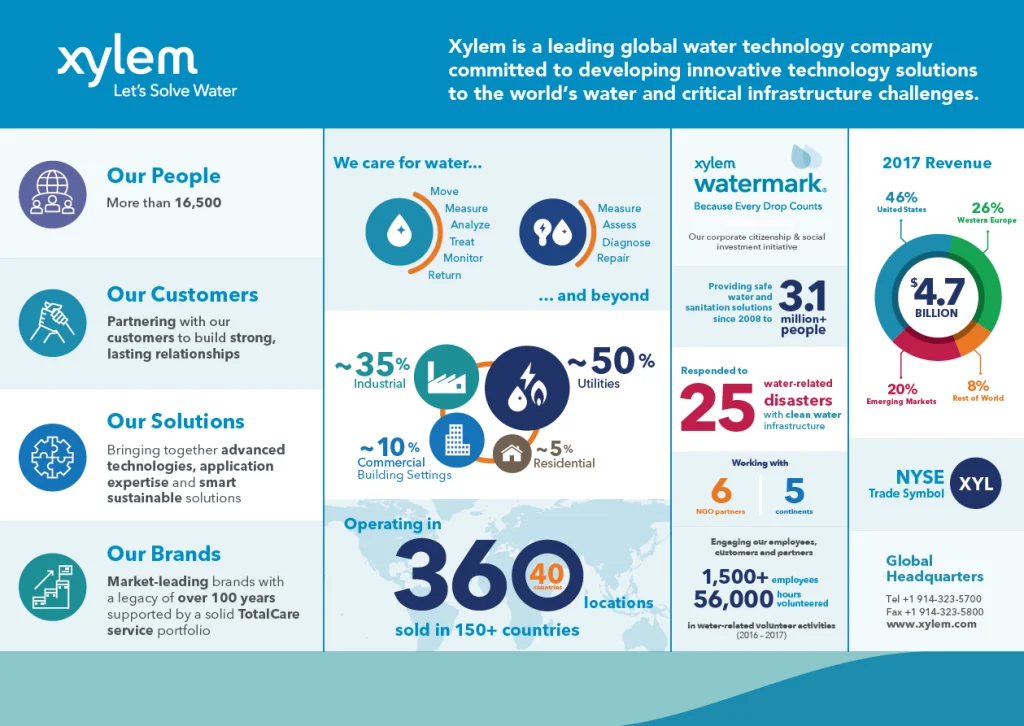 赛莱默是一家领先的水处理技术公司,致力于通过创造创新和智能技术解决方案来“解决用水问题”,以满足全球对于水、废水和能源的需求。面对日益增长的挑战,我们将创新水技术解决方案运用到水循环的方方面面。我们在水循环方面的技术优势首屈一指。从收集和分配到重新使用和回到自然,我们高效的水处理技术、工业泵和应用解决方案不仅耗能更少,寿命周期成本更低,而且还有助于提高可持续性。赛莱默提供一系列产品和系统,旨在有效地满足水和污水处理需求及挑战。从更智能的曝气,到先进的过滤,再到不涉及化学品的消毒,赛莱默的专家可以评估客户的不同需求,帮助他们找到合适的解决方案。